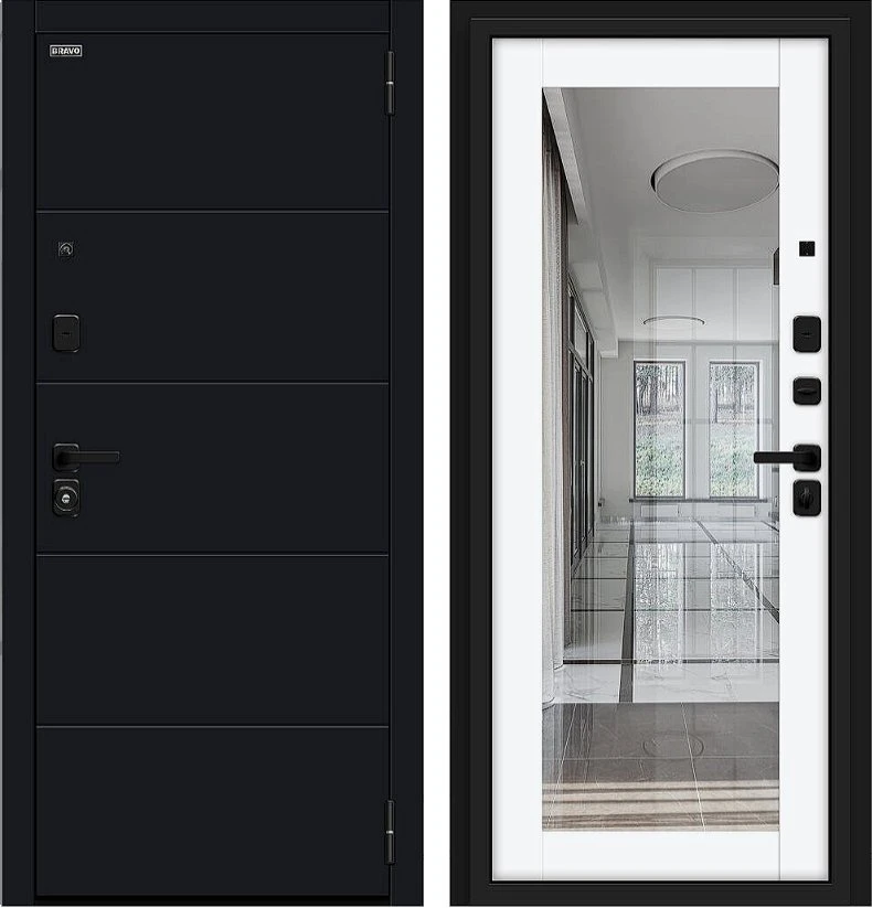 Надежная входная Дверь Браво Флэт/SBlack Black Shell/White Silk премиум класса по цене 43 221 руб. Большая толщина стали защитит от проникновения в ваш дом, квартиру или коттедж. Используется очень качественная фурнитура: замки, цилиндры, ручки, защелки. Покрытие и отделка двери изготовлено под внимательным контролем производителя. Дверь имеет долгий срок службы и гарантию.
